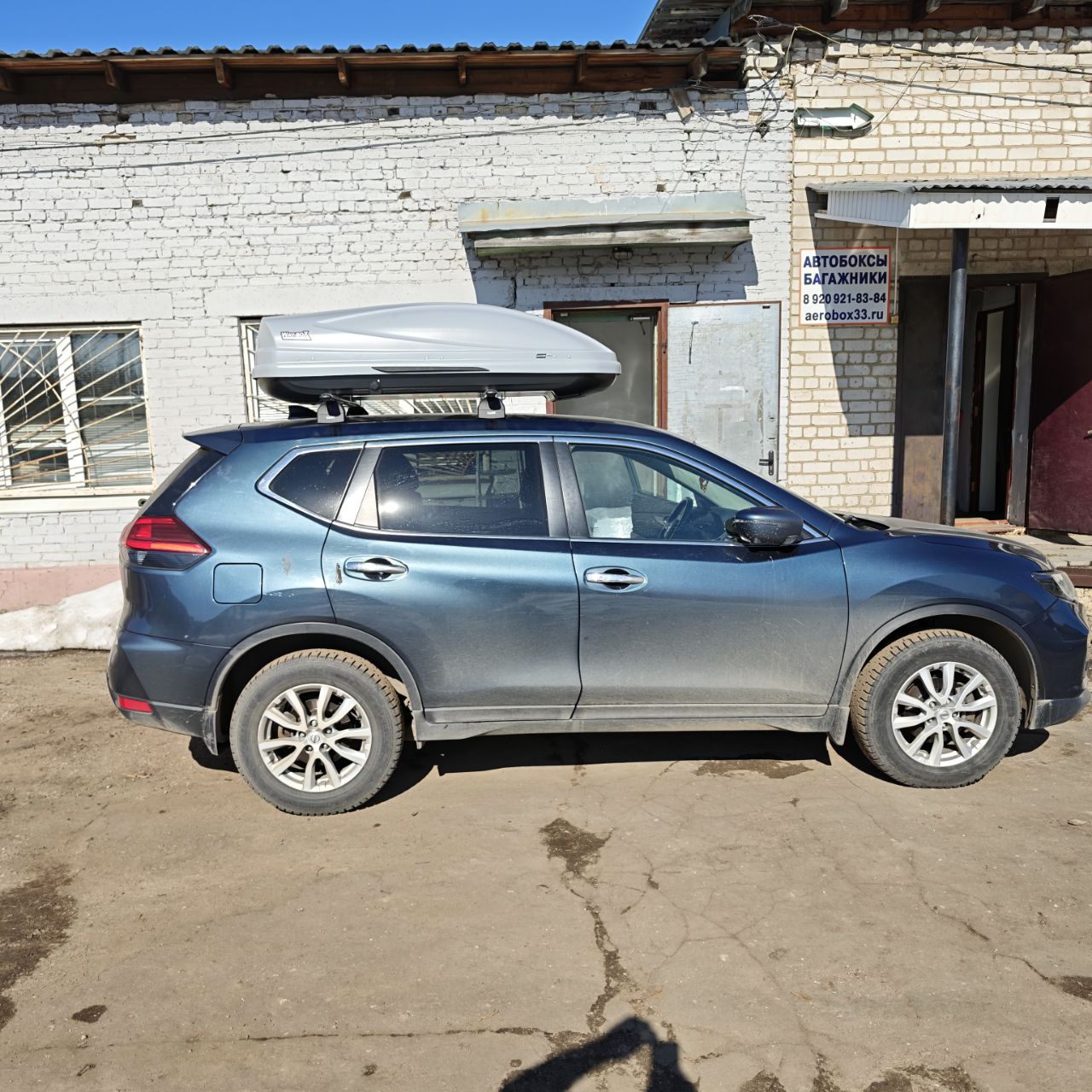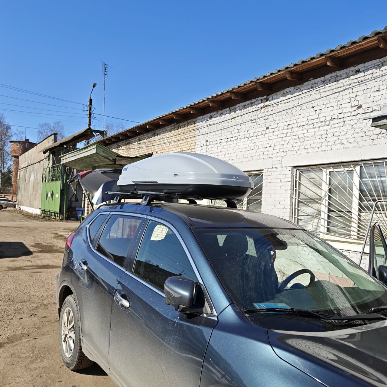Автобокс Way-box Lainer 460 литров на Nissan X Trail T 32 установка поперечин в штатные места. Единственный бокс из линейки моделей Way-box, который позволяет открыться крышке багажника не задевая заднюю часть бокса, при условии, что поперечины будут овального профиля. На фото комплект поперечин Lux БК 2 с овальной аэродинамической поперечиной.