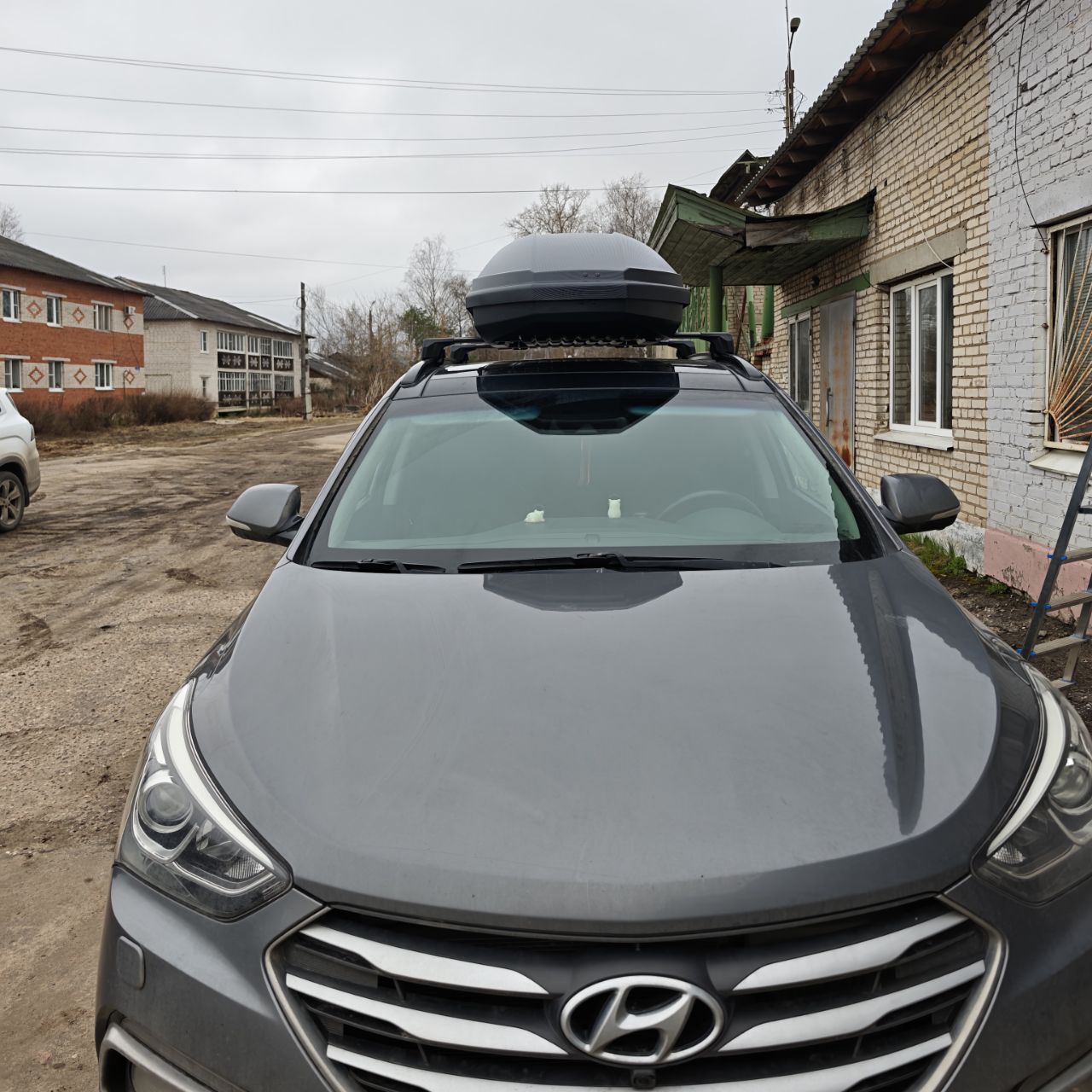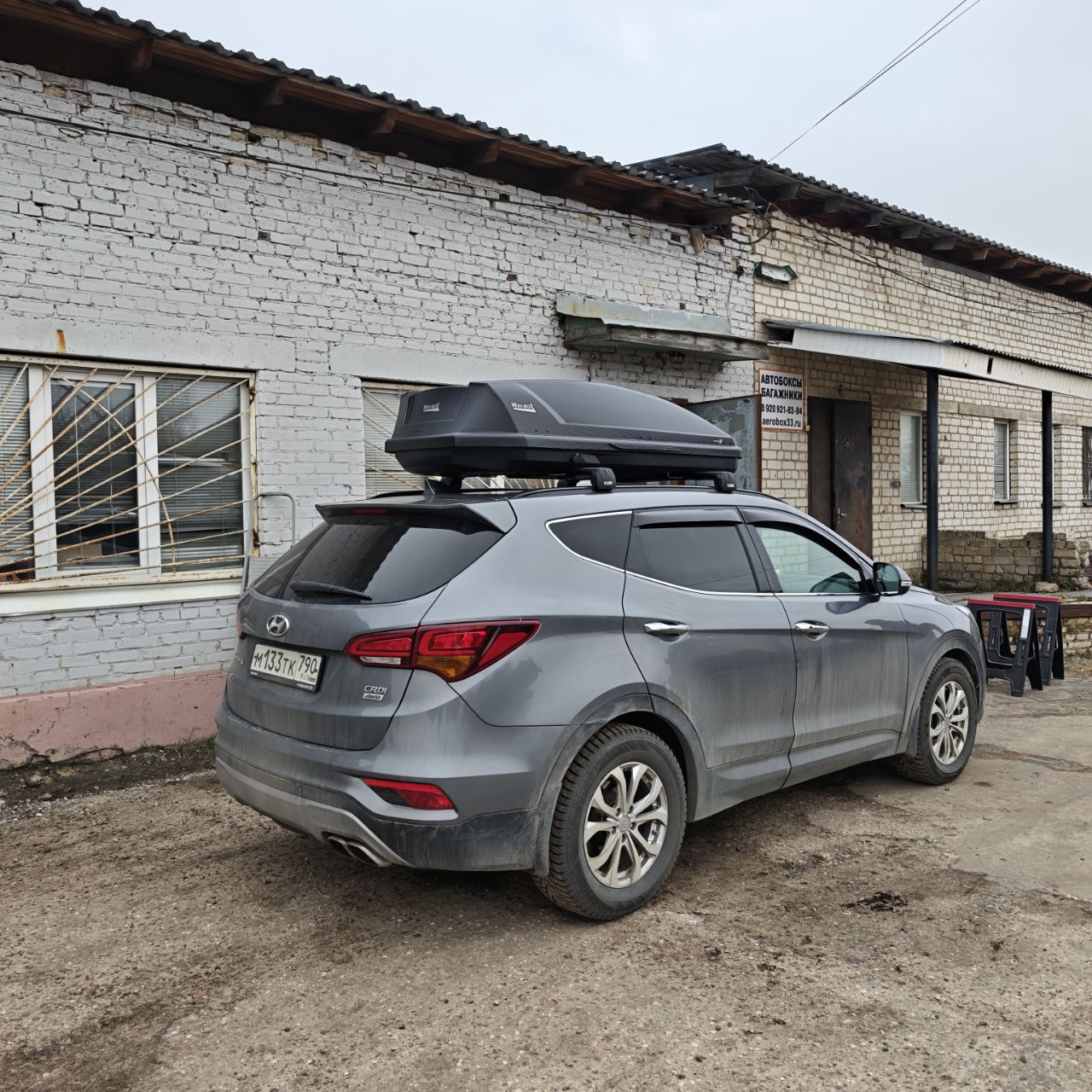 Оптимальный бокс по размерам на Hyundai Santa Fe 3, как раз во всю крышу.